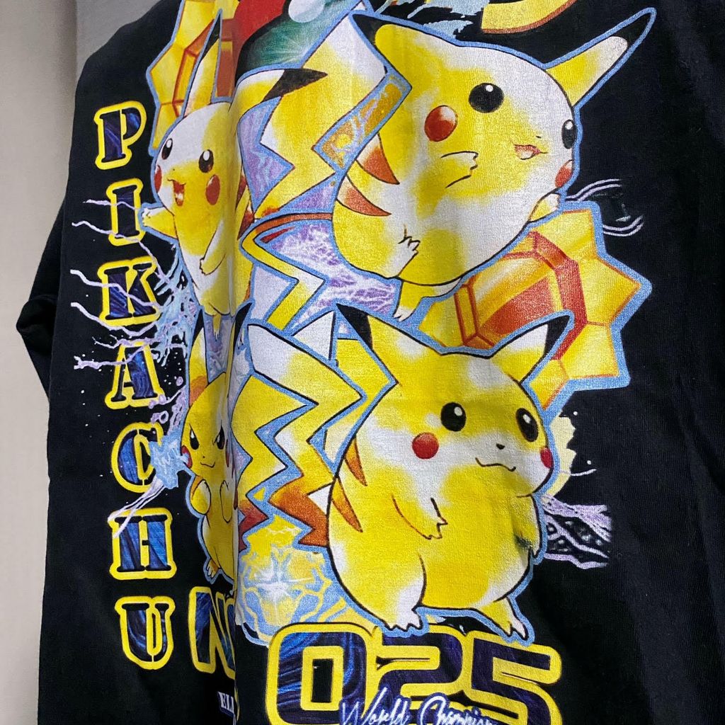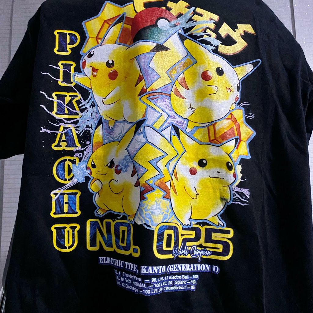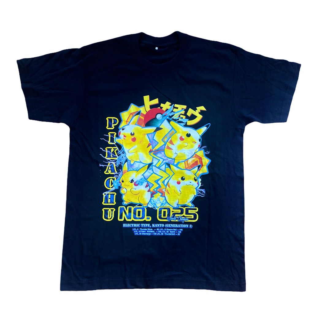 I choose you! The “World Champion” t-shirt is inspired by the worlds most recognizable yellow ball of electricity. Pikachu. The “World Champion” t-shirt lists Pikachu’s place of origin along with each attack Pikachu can learn within different levels of training. Each “world champion” t shirt is packed with one random collectible Pokémon TCG card. Where will you travel with Pikachu this summer?