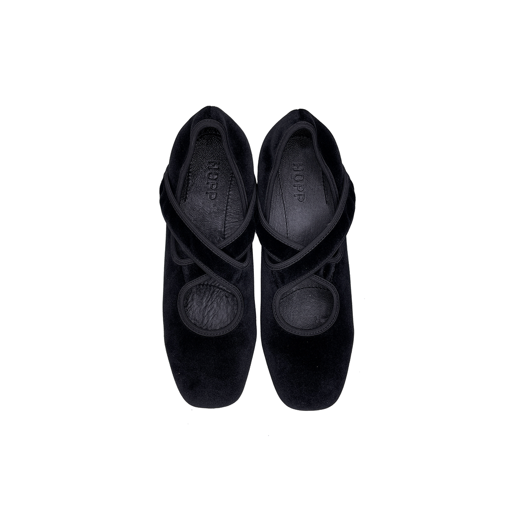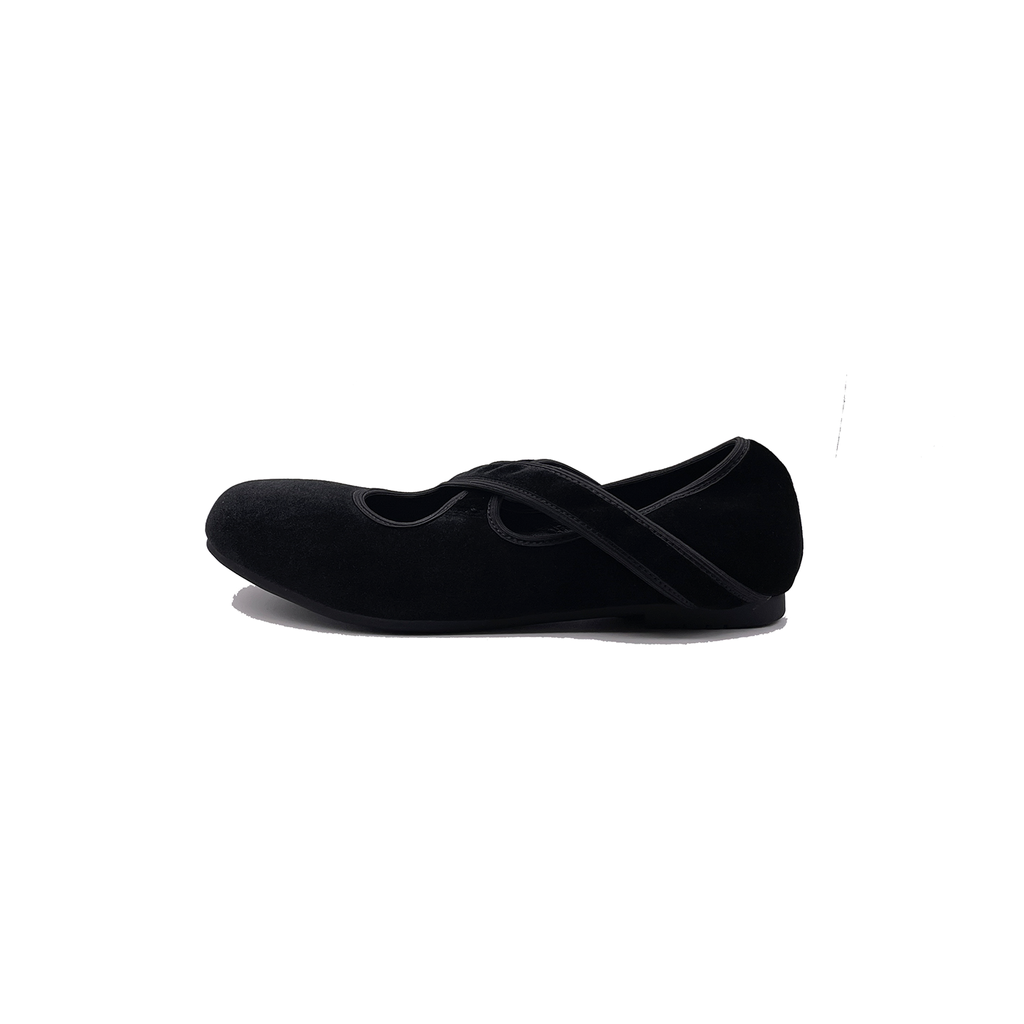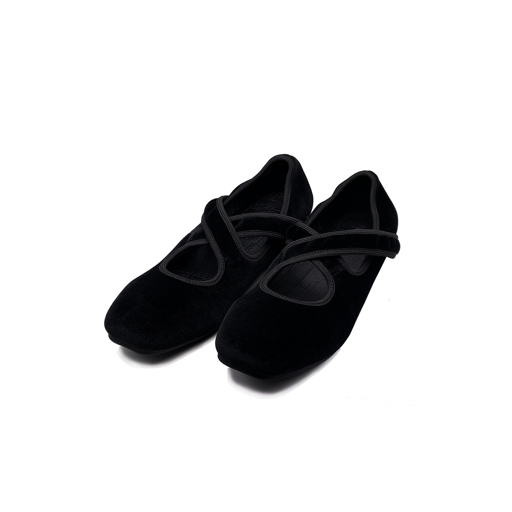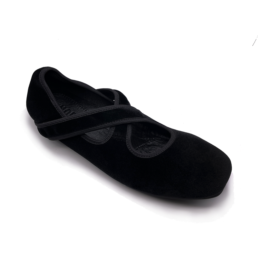 The X Ballet is a classic ballet flat style that features rubber soles and easy-in, easy-out stretch comfort.