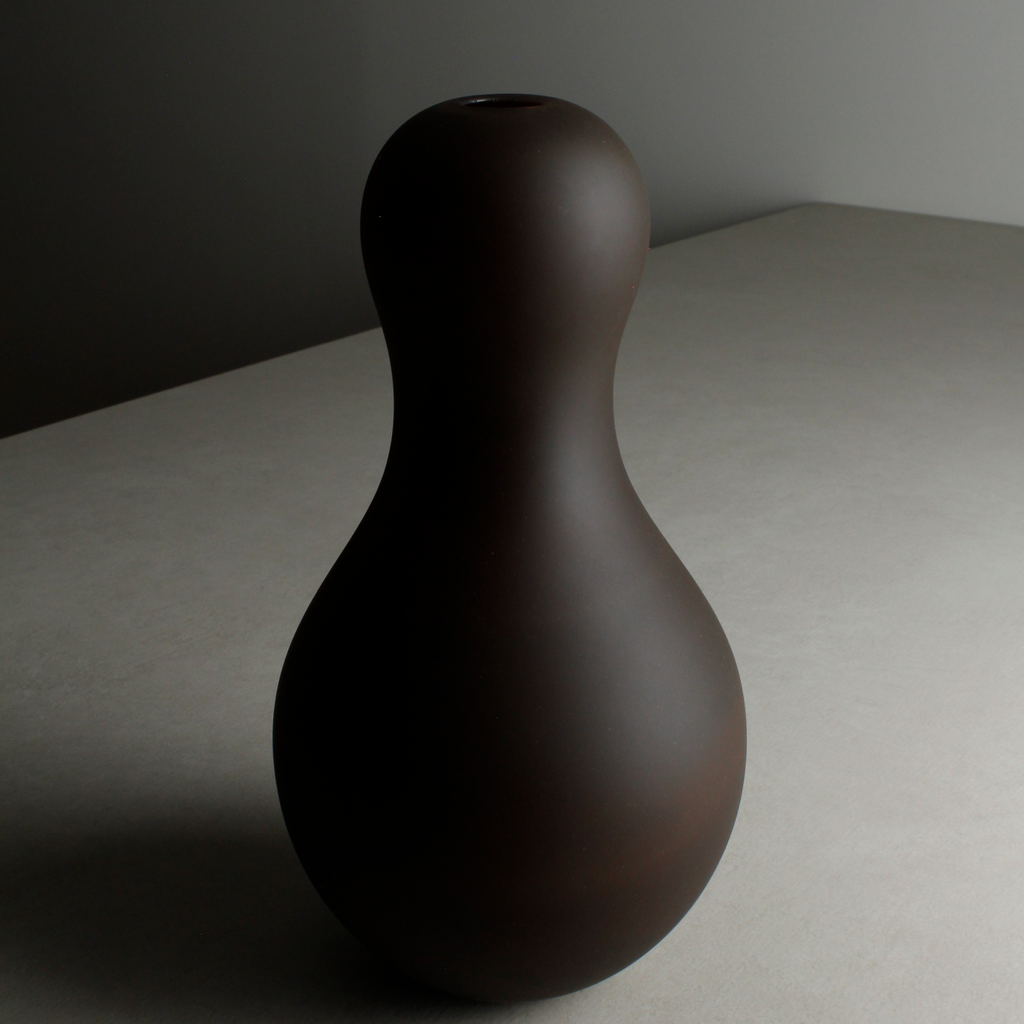 XLarge handblown glass vase in Chocolate. Opaque satin finish.