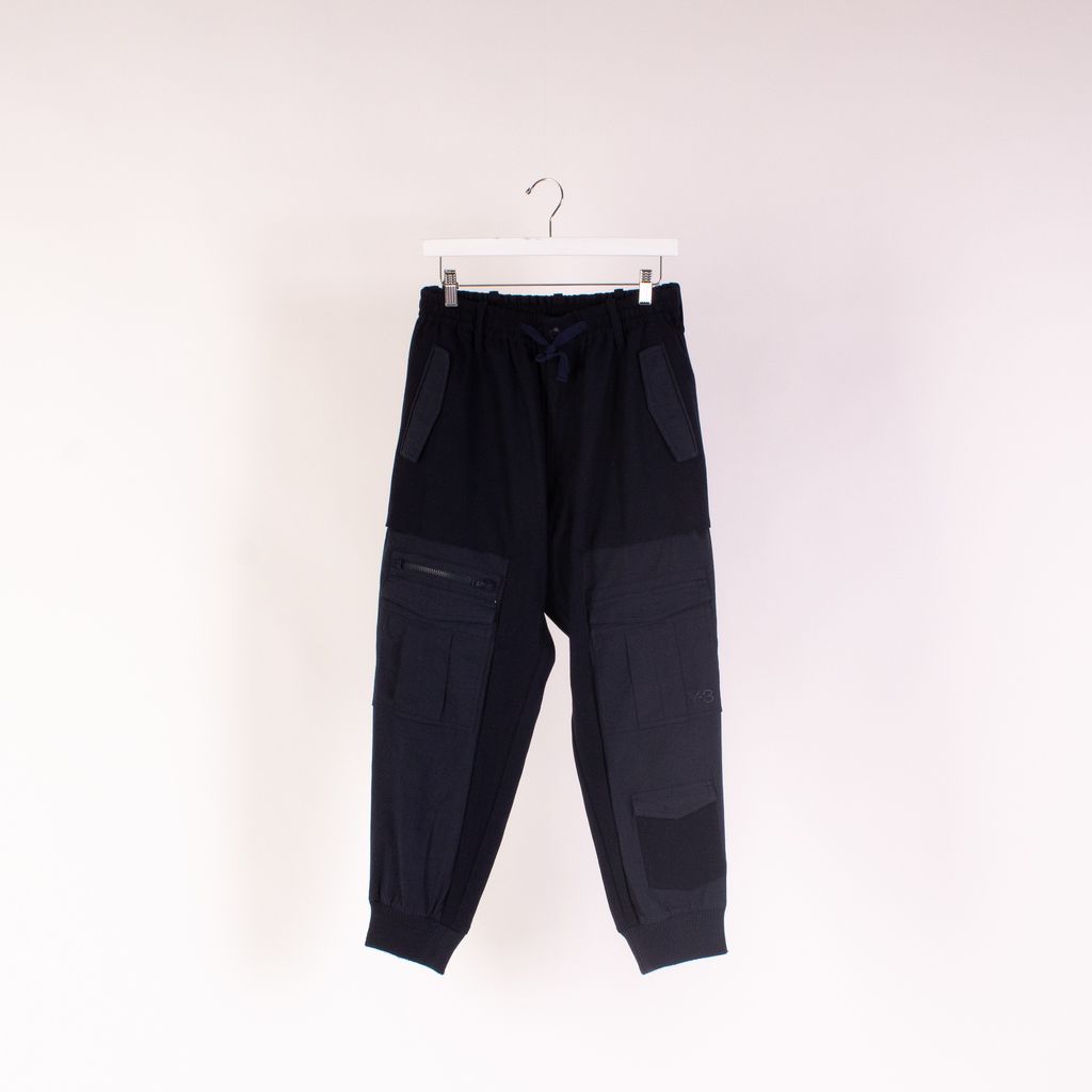 From the Y-3 line, the Adidas and Yohji Yamamoto brain child, these pants are an amazing mix of ease of wear and top of the line design. Features full leg cargo pockets on sides, cuffed legs, back flap pocket, waist tie, and belt loops along waist.