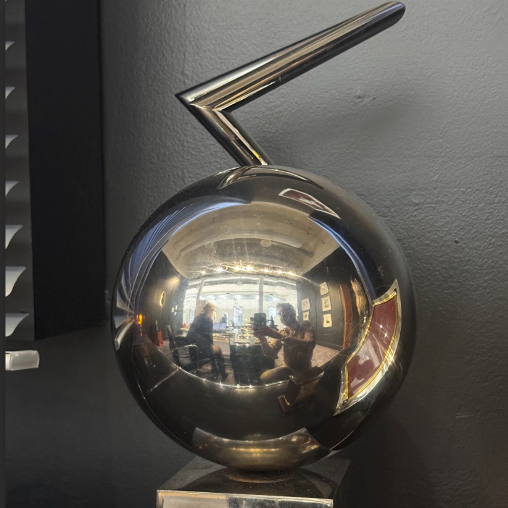 A kinetic modernist sculpture by Yaacov Agam, featuring painted metal geometric elements that visually shift as the viewer moves. A strong example of Agam’s signature exploration of color, perception, and dimensionality.