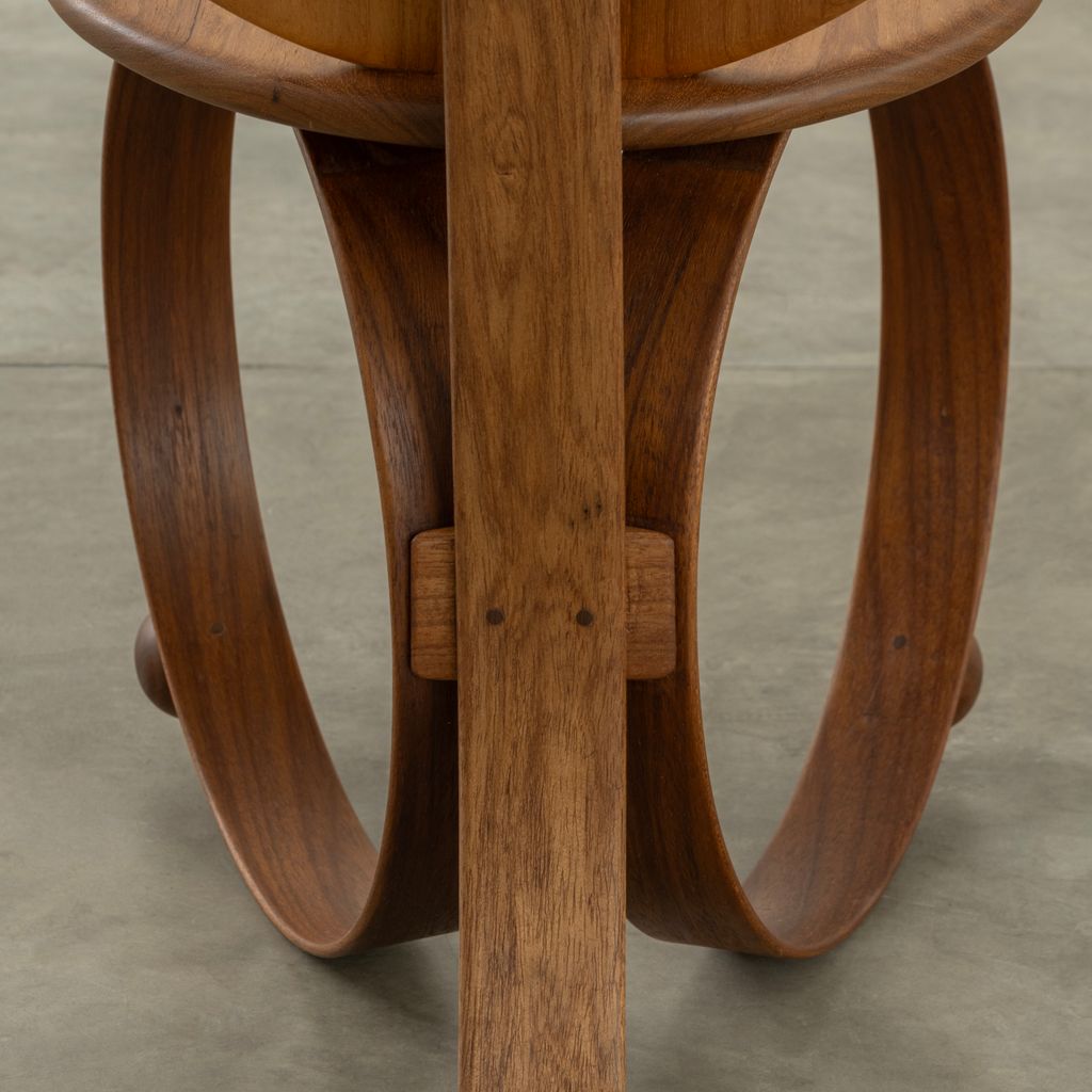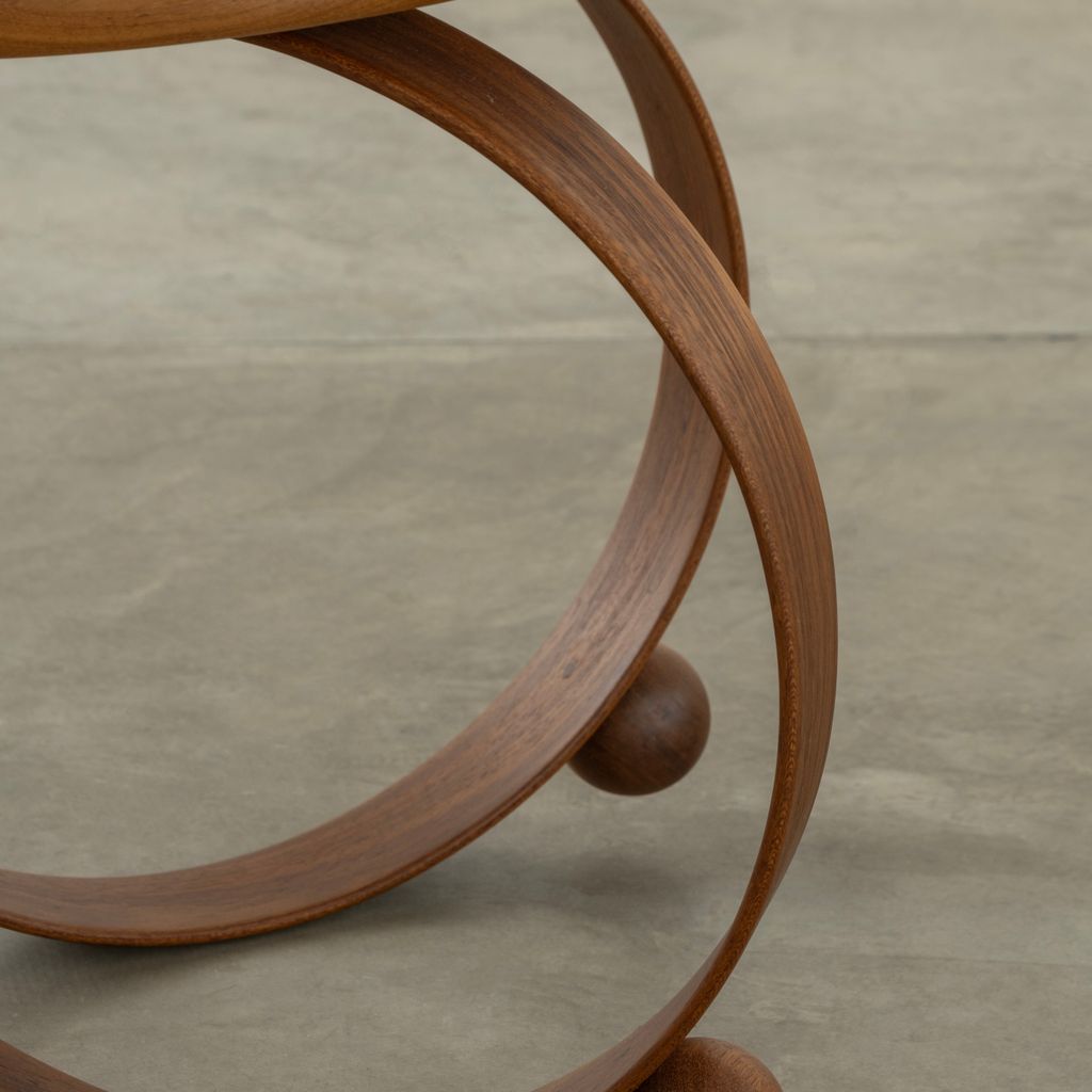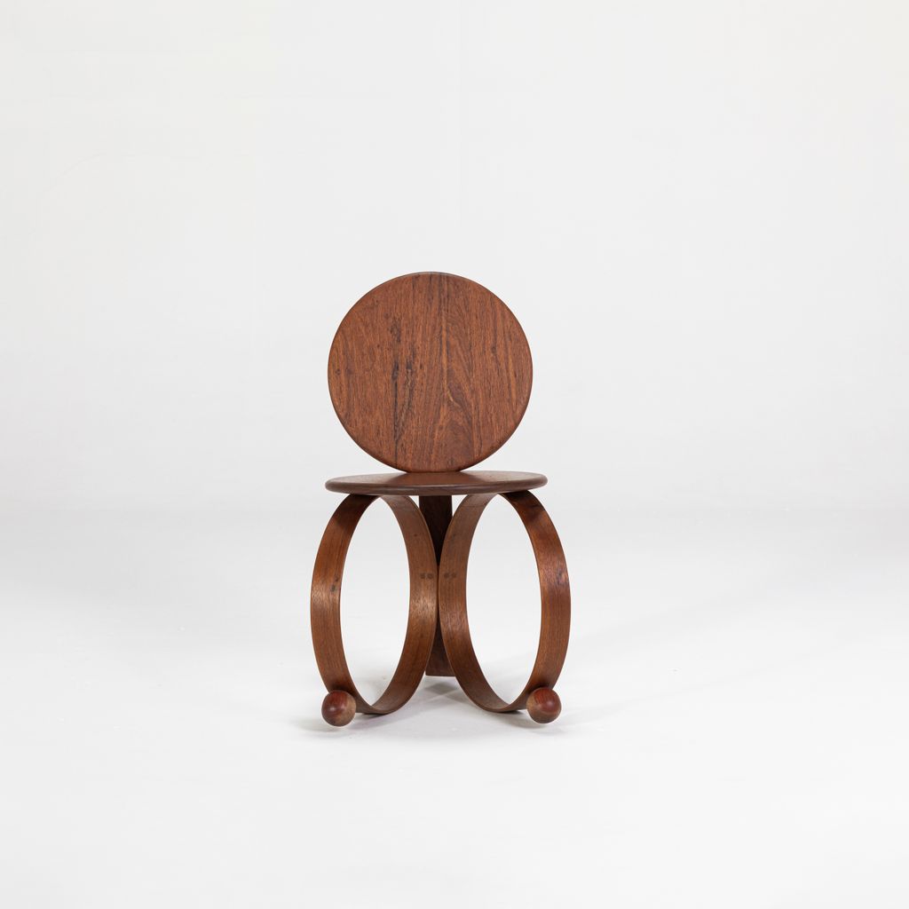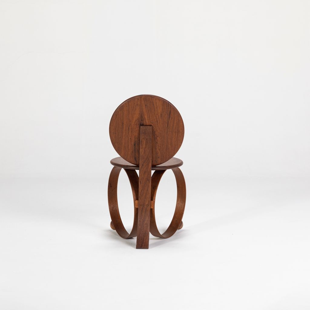 Yara emerged as a result of research into steam-bending wood conducted by the studio in 2022. This is a legless chair, supported by two circles of solid wood that have been steam-bent. Yara is a flexing chair, with its entire structure reacting proportionally to the weight of the sitter, changing and adapting together. A disruptive piece, its sculptural form, simple lines, and the combination of its elements challenge the conventional status of a chair.