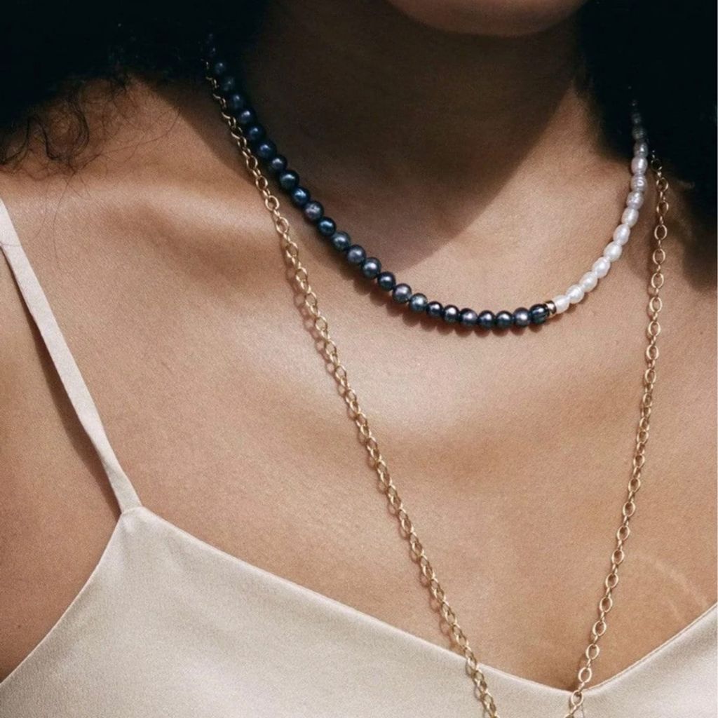 16" length. Fresh water pearls, peacock pearls, gold filled bead and clasp.