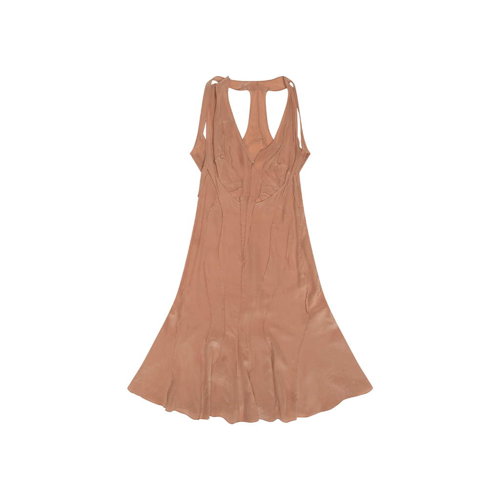 Yves Saint Laurent By Tom Ford Cutout Silk Dress features side zip closure and detailed paneling design.