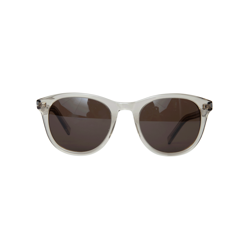 Yves Saint Laurent SL 401 Sunglasses features semi oval shape, clear yellow frames, and brown lenses.