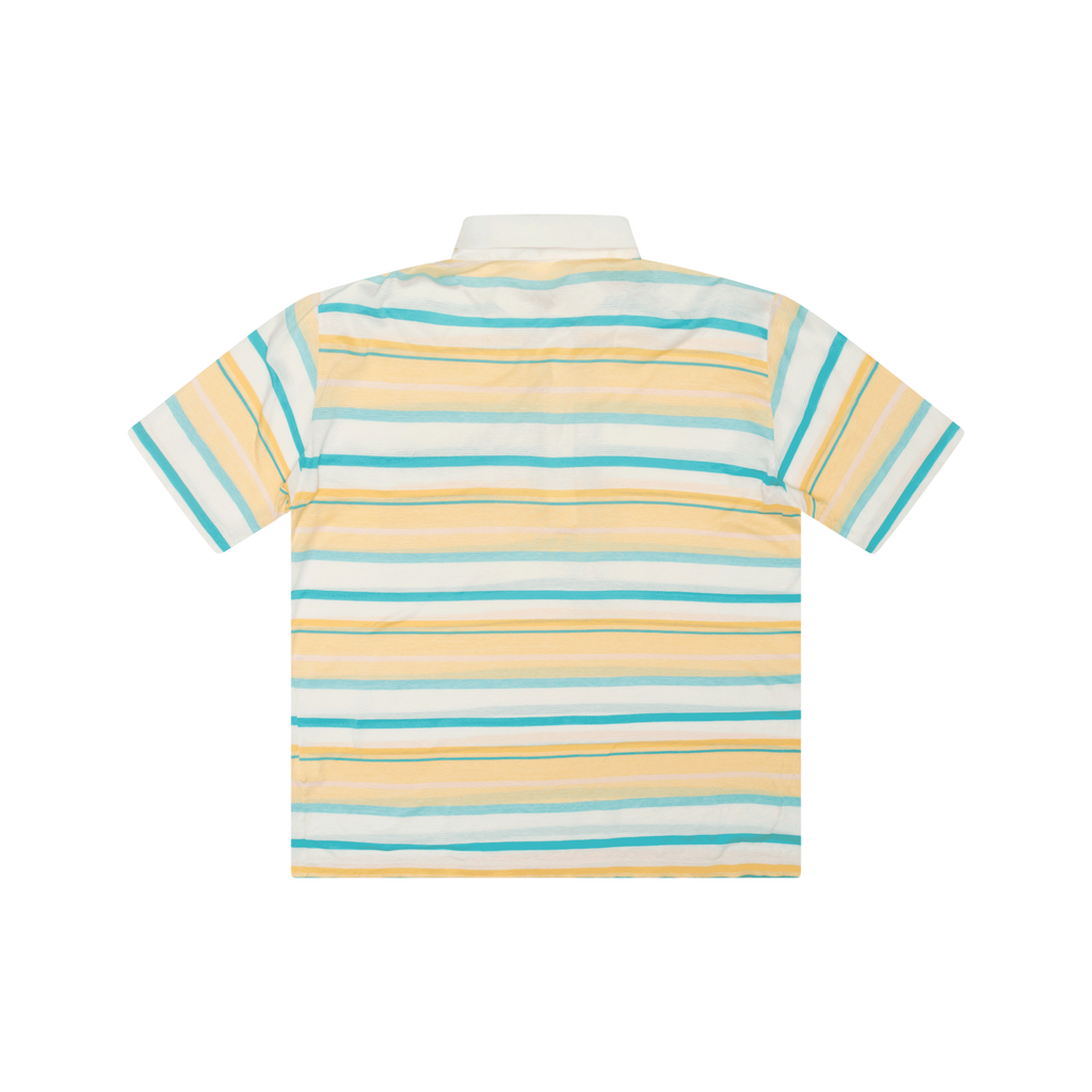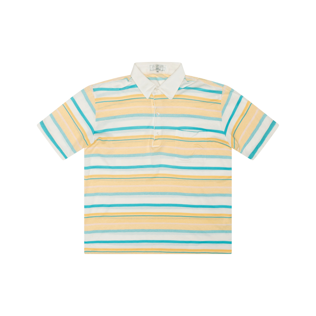 Yves Saint Laurent Yellow Polo features classic collar, front button closure, striped design through out, and front pocket.