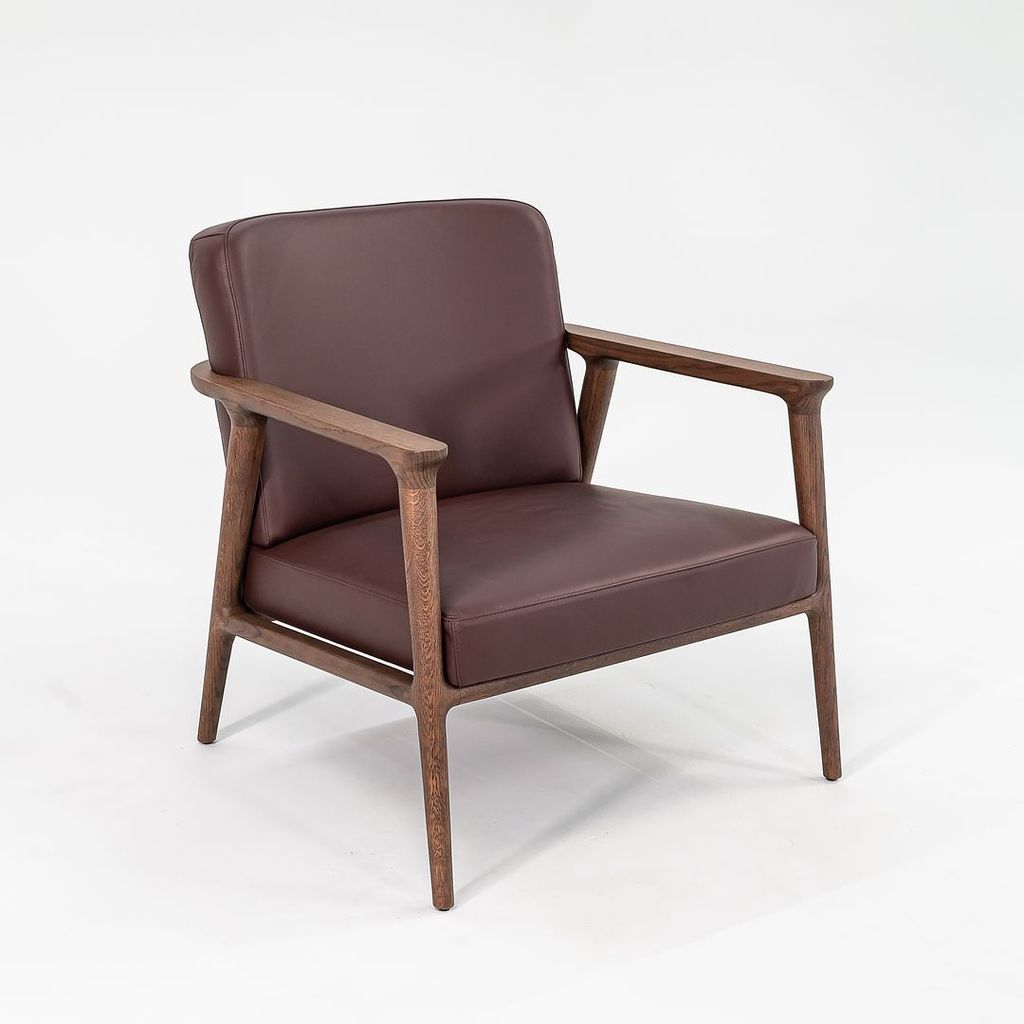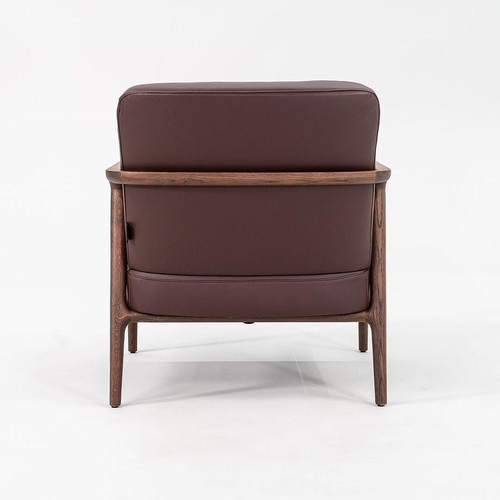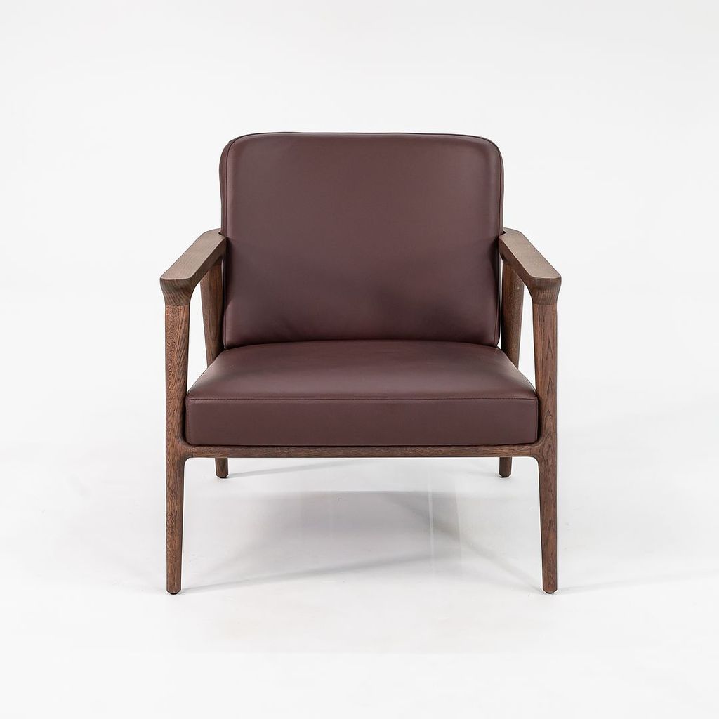 Listed for sale is a Zio Lounge Chair made with a dark brown oak frame and brown Spectrum leather. The chair was designed by Marcel Wanders and produced by Moooi in the Netherlands. It dates to circa 2022 and is guaranteed as authentic. Condition is excellent. See photos.