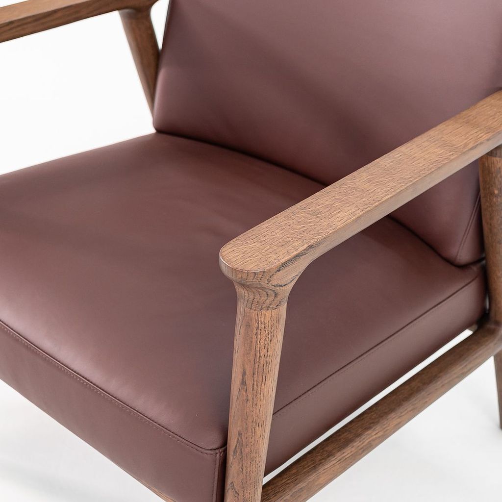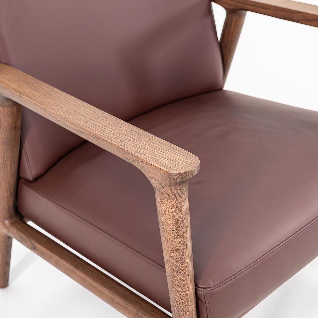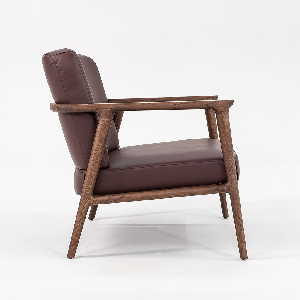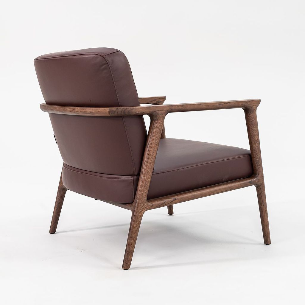 Listed for sale is a Zio Lounge Chair made with a dark brown oak frame and brown Spectrum leather. The chair was designed by Marcel Wanders and produced by Moooi in the Netherlands. It dates to circa 2022 and is guaranteed as authentic. Condition is excellent. See photos.